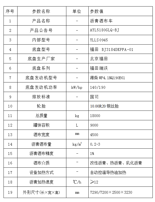 2、YLLS0945(國(guó)Ⅵ 標(biāo)配型)全自動(dòng)瀝青灑布車(chē)技術(shù)參數(shù)